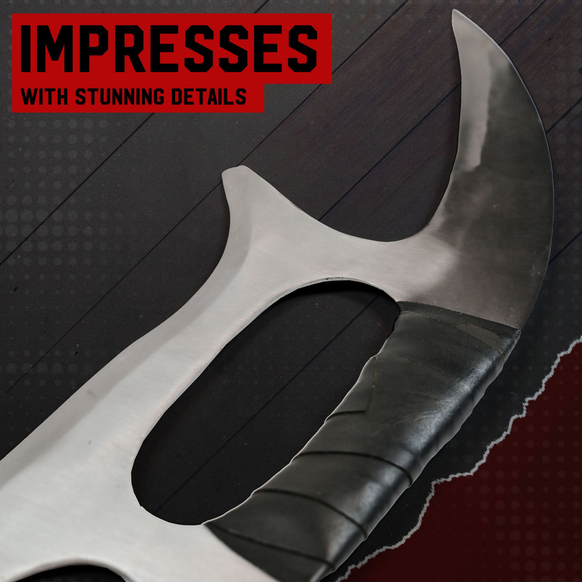 Välgjord Klingon Bathlet Star Trek The Next Generation inspirerad av Star Trek:s Klingon Bathlet. Cool inredningspryl för Trekkies och filmnördar som gillar Scifi! Förgyll samlingen eller att ta med på lajv och cosplay event. Klingon Bat’leth är ca 130 cm lång och väger ca 2,5 kg. Gjord i stål. Ett måste för Star Trek fans. Ej licensierad produkt!